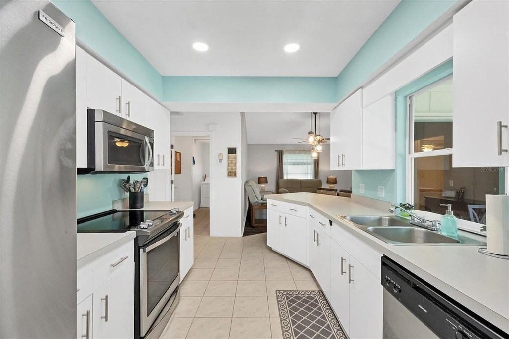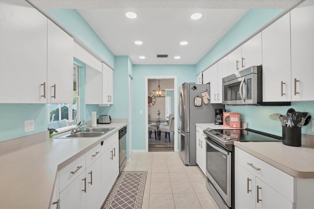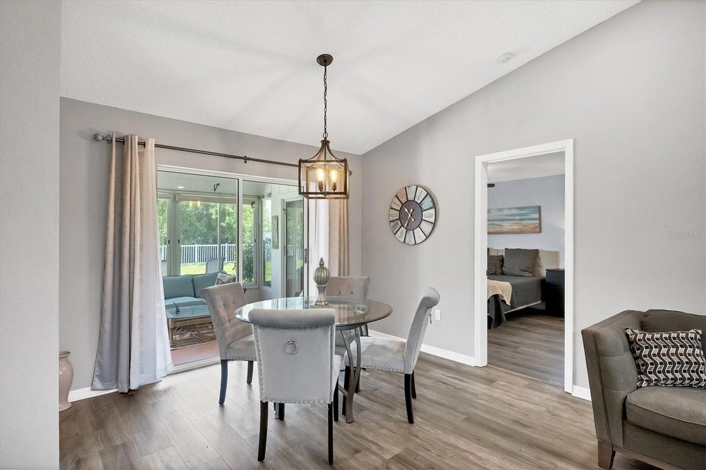 Less than 7 miles from the Beach! Welcome to your Florida retreat, located in a desirable X Flood Zone, no flood insurance required! This beautifully maintained home offers a generous layout and a long list of updates, making it move-in ready and perfect for full-time living, seasonal stays, or rental income. The HOME FEATURES: 2 bedrooms and 2 full bathrooms, living room + family room + dining room + dinette, an expansive interior laundry room with utility sink & extra shelving, 10' x 21' Florida Room (not included in A/C square footage), 2-car garage + 6' x 8' backyard shed, fully fenced backyard with an extended concrete patio and plenty of closet space throughout. SELLER UPDATES: Luxury vinyl plank flooring in bedrooms and main living areas, vanity in guest bath, updated light fixtures and kitchen lighting, screens in Florida room, A/C unit, renovated primary bathroom, stainless steel refrigerator, washer & dryer, water heater, roof & gutters, interior and exterior paint, backyard fence and patio addition. The primary suite boasts a massive walk-in closet, and you'll find linen closets in both bathrooms, two closets in the foyer, a pantry in the kitchen, and even more storage in the laundry room. With three distinct living areas, living room, family room, and enclosed Florida room, there's plenty of space to entertain or unwind. Located in a quiet, friendly neighborhood, this home is being sold fully furnished, just bring your toothbrush and start enjoying the Florida lifestyle! Don't wait, schedule your showing today and make this coastal gem yours! County records show the home as 3 bedroom.
